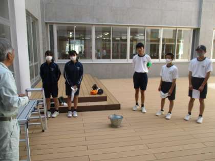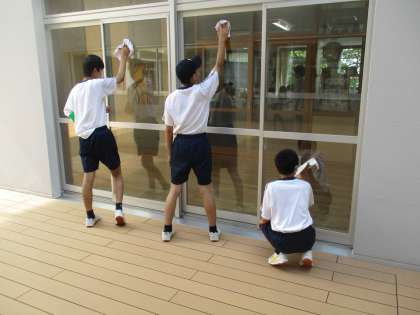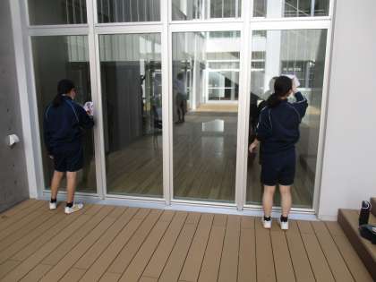 事業所が休業等で活動のない生徒は、学校で活動を行っています。普段掃除しない箇所を掃除していました。汚れが残らないよう丁寧に掃除していました。
