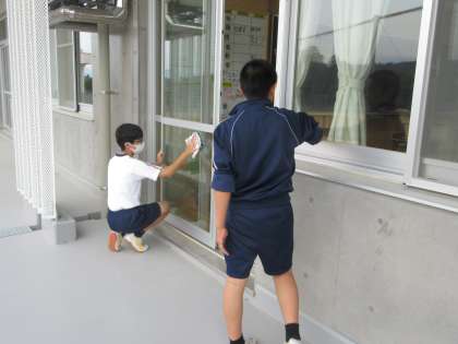 7月5日(水)2年生「社会に学ぶ『14歳の挑戦』」3日目 公開日 2023/07/05 更新日 2023/07/05 2年生 学校にて 廊下の黒ずみや教室の窓ふきなど普段掃除できない箇所の清掃をしました。きれいになるよう時間をかけて取り組んでいました。