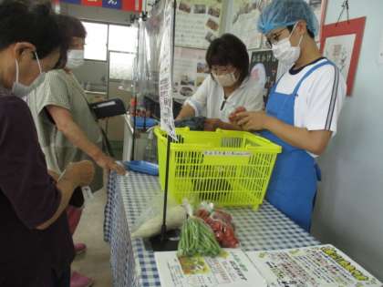 販売日で、お客さんがたくさん並んでおられる中、テキパキと品物の計算や袋詰めをしていました。忙しい中でも「ありがとうございました」とお客さんへの挨拶もできていました。