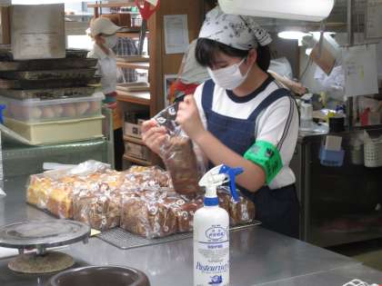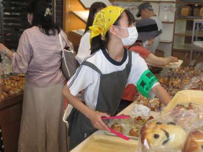7月6日(木)2年生「社会に学ぶ『14歳の挑戦』」4日目 公開日 2023/07/06 更新日 2023/07/06 2年生 「ぱんだ・ぱんだ」にて パンの包装や陳列を行っていました。店内は混み合っていましたが、落ち着いて仕事をこなす姿が印象的でした。