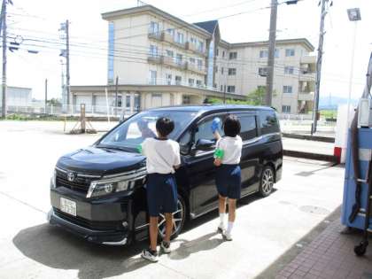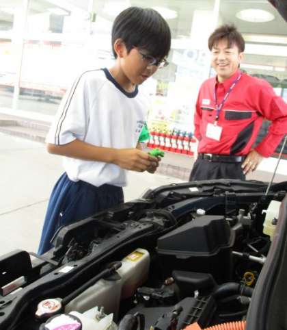 7月6日(木)2年生「社会に学ぶ『14歳の挑戦』」4日目 公開日 2023/07/06 更新日 2023/07/06 2年生 「グリーンポート大山」にて 給油や窓ふき、精算を真剣に行っていました。ボンネットを開け、エンジンオイルの点検の仕方も教えてもらっていました。