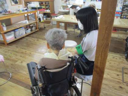 7月6日(木)2年生「社会に学ぶ『14歳の挑戦』」4日目 公開日 2023/07/06 更新日 2023/07/06 2年生 おらとこ東にて 朝の水分補給の時間でした。利用者さんの横に座って穏やかに見守っています。