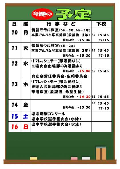 11/28( 金 ) 11月28日(金)各学年「2学期末考査」