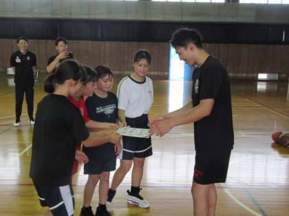 7月8日(土)バスケットボール部「プロ直伝!とやま夢づくりスポーツ塾」2 公開日 2023/07/08 更新日 2023/07/08 部活動 クリニック後には、上田選手から部員たちにメッセージをいただき、女子バスケットボール部から上田選手に応援メッセージを贈りました。 とやまグラウジーズの皆様、大変貴重な機会をいただき、ありがとうございました。