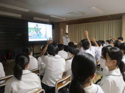本日5時間目、市教育センターの教育専門員にお越しいただき、情報モラル教室を実施しました。
