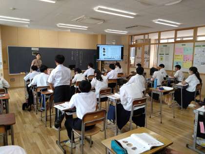 今日の2年生の道徳は『「和食」の良さってなんだろう』という題目について、話し合っていました。日本文化の一つでもある「和食」の良さについて、一人一人の意見を静かに聞いたり、班になって意見をまとめ合ったりしていました。