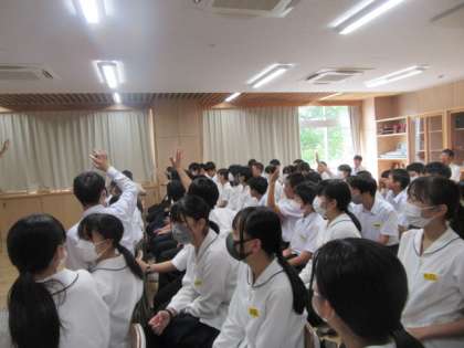 7月11日(火)2年生 情報モラル教室 公開日 2023/07/12 更新日 2023/07/12 2年生 富山市教育センターから教育専門員にお越しいただき、情報モラル教室を実施しました。 講師のお話から、スマートフォン等でネットを利用する際の注意点や、フィルタリングの重要性について学びました。 また、ネットへの依存度を自己チェックするコーナーでは、楽しみながら自分のネット依存度を知り、生活を見直すきっかけとなったようです。