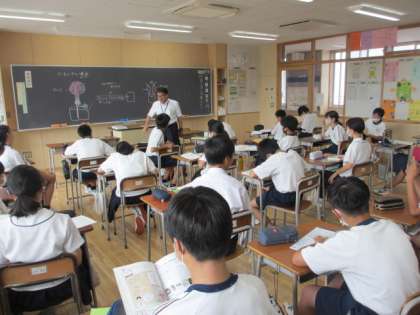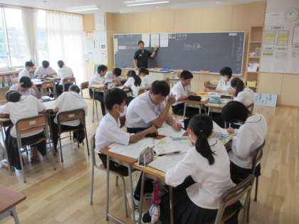 2組は理科。夏休みの自由研究どうする?と、意見交換していました。