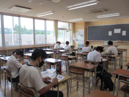 部活動ではありませんが、3年生が自主的に登校して勉強していました。