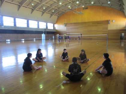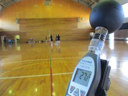 8時30分現在、社会体育館での暑さ指数(WBGT)は、27.2(警戒)となっており、水分補給をしっかりと行いながら活動します。バドミントン部はしっかりとアップ。バレーボール部は昨日の合同練習で刺激を受けてきたのか、気合いが入っています。