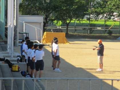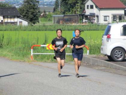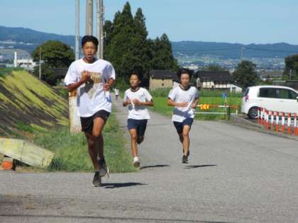 7時30分、暑さ指数(WBGT)29.3(厳重警戒)。気温は高いのですが、風が心地よく涼しく感じる中、駅伝部のアップが始まりました。今日は第1回選考会。夏休み前半の練習の成果を試す日です。