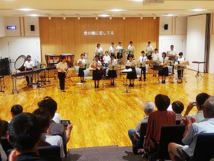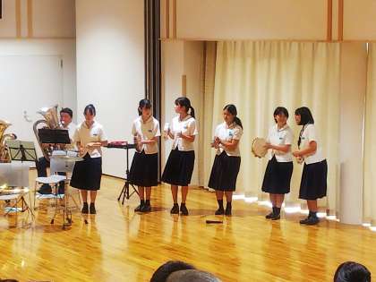 8月12日(土)吹奏楽部 サマーコンサート 公開日 2023/08/12 更新日 2023/10/08 部活動 吹奏楽部は大山会館にてサマーコンサートを開催しました。 会場は用意していた客席がほぼ満席となり、ご来場くださいました皆様に感謝いたします。 アンコールを含めて全9曲を力強く演奏し、会場からは手拍子や大きな拍手をいただきました。