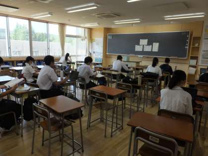3年生は一部生徒が自主的に登校し、今日も学習に励んでいます。(下)