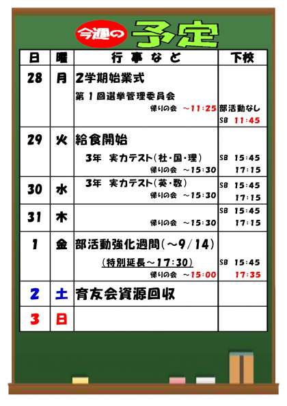 3年生は実力テストがあります。夏休みの学習の成果が出るとよいですね。