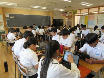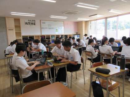 本日は、平和に関して興味のあるテーマや、広島平和記念公園にある施設について、各自がテーマを決めて調べ学習を行いました。