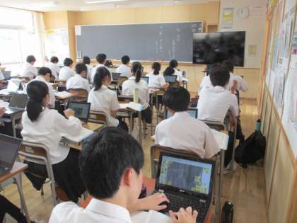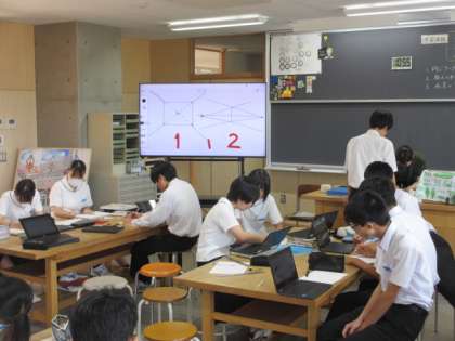 9月5日(火)授業風景 公開日 2023/09/05 更新日 2023/09/05 その他 2年生の美術の授業では、透視図法の学習をしています。各自が調べた部屋の画像等をもとに、部屋のバランスについて話し合っています。 2年生の国語では、「盆土産」の学習で、実際に体験した墓参りの様子を画像を使って学んでいます。 3年生の国語では、「挨拶−原爆写真によせて」の学習で画面上の付箋を使って意見交換をしています。
