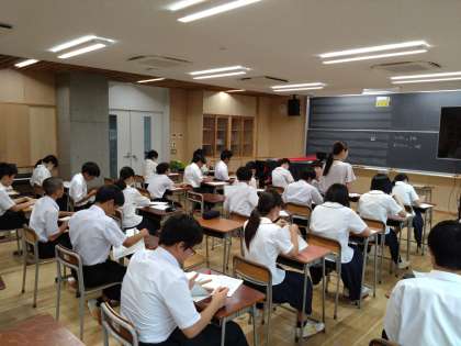 9月6日(水)2年授業風景 公開日 2023/09/06 更新日 2023/09/06 2年生 1限目の授業風景。2年1組は音楽。来月行われる合唱コンクールに向けての準備として、クラス合唱曲の楽譜を製本していました。感動的な合唱になるようみんながんばっています。