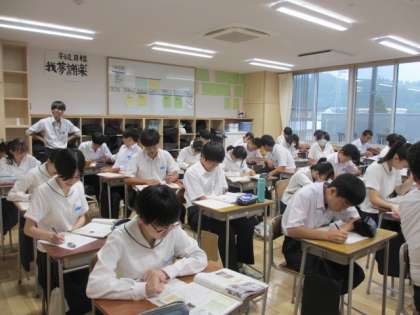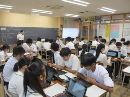 2限目の3年授業風景です。3年1組は社会。日本国憲法の成立について学習しています。
