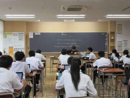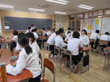 6限目、3年生は文化活動発表会に向けて、各クラスのスローガンを考えました。