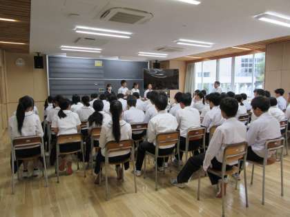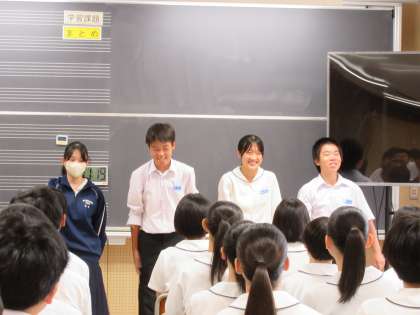 学年プロジェクトの生徒たちが、スローガンや目標・きまりなどを発表し、学年全体で確認しました。