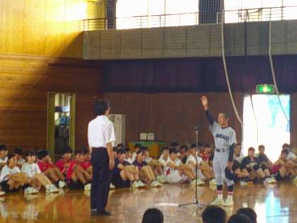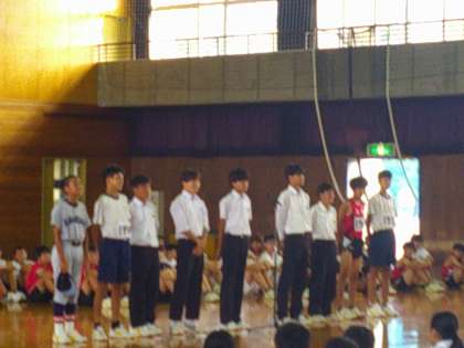 9月12日(火)市新人大会・県中学駅伝競走大会 壮行会 公開日 2023/09/12 更新日 2023/09/12 部活動 15日(金)からの市新人大会、30日(土)に行われる県中学校駅伝競走大会に向けて、壮行会を行いました。 選手たちは堂々と入場し、各部部長が大会に向けて力強く意気込みを述べました。 上:選手入場 中:決意表明(男子駅伝部) 下:選手宣誓(野球部主将)