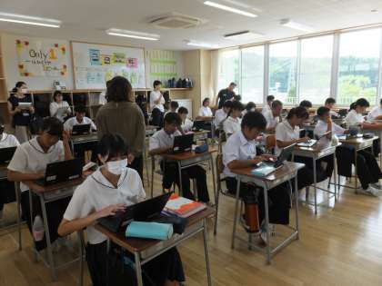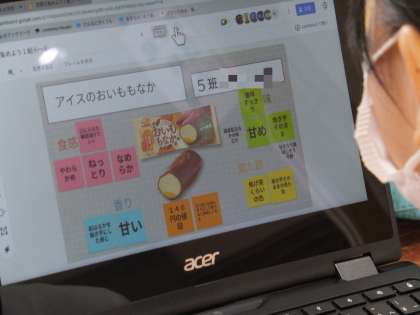 9月14日(木)GIGAスクール構想推進モデル校公開授業 公開日 2023/09/14 更新日 2023/09/14 1年生 1年1組国語「言葉を集めよう〜もっと伝わる表現を目指して〜」 自分が紹介したい食べ物の魅力を伝えるために、言葉を集めています。