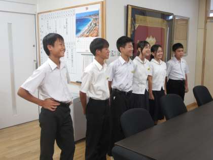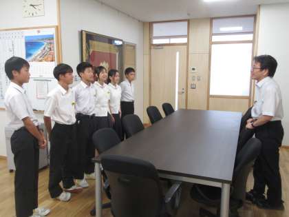 本日放課後、校長室で後期生徒会のメンバーがあいさつを行いました。正式に活動するのは明日の認証式を終えてからですが、それぞれが校長先生に今後の意気込みを述べていました。これから、新たな上滝中学校の伝統を築いていけるよう頑張りましょう。