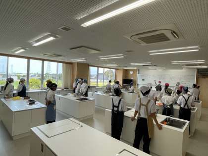 9月20日(水)2−2 調理実習 公開日 2023/09/20 更新日 2023/09/20 2年生 今日はチョコチップ蒸しパンの料理を作っていきます。 写真は手順確認をしているところです。 ・・・・・・ そして、美味しい蒸しパンができました!