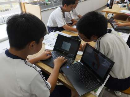 9月21日(木)1−2美術 授業風景 公開日 2023/09/21 更新日 2023/09/21 1年生 「富山」の特徴や魅力が伝わる観光ポストカードをつくろう」という課題です。 Chromebookを活用して、富山の特産物の画像を探したり、イラストを描いたりしています。