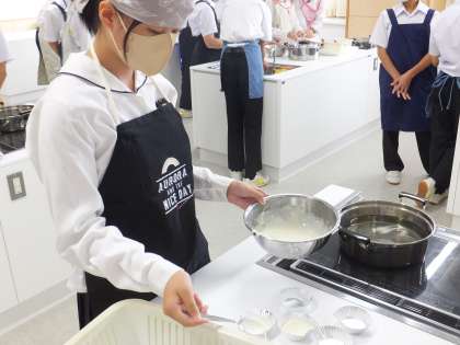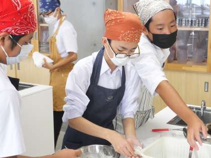 2限家庭科 本日の調理実習では、チョコチップ蒸しパンを作っています。