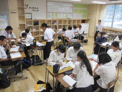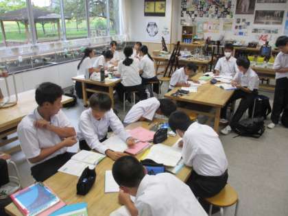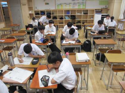 中間考査に向けて、放課後に自主的に学習できる機会を設けています。自習、教え合い学習が可能な教室、静かに黙々学習する教室、先生に質問ができる教室等を用意しています。生徒たちは、それぞれ希望した場所で勉強していました。
