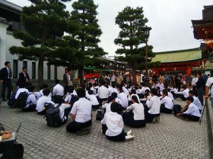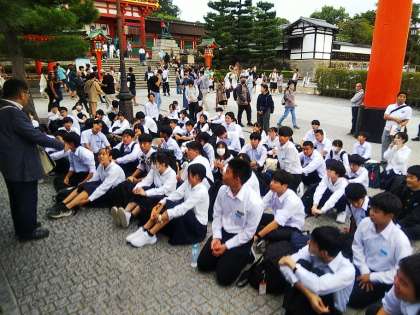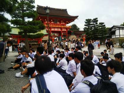 それぞれいろいろアクシデントがあったようですが、班のみんなの力を合わせて、無事伏見稲荷大社に到着。笑顔いっぱいです。
