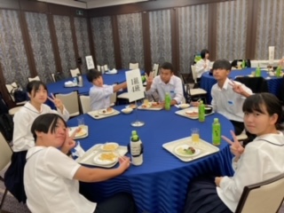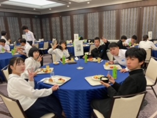 今日は宮島厳島神社、そして平和学習です。実りのある1日にするため元気に食べます。