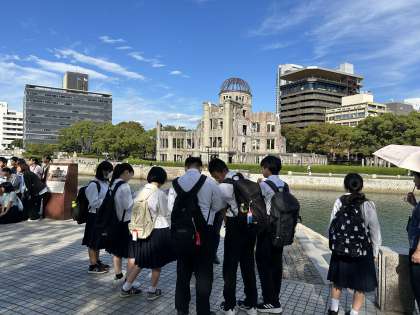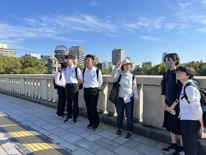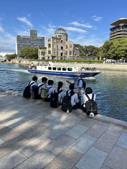 ガイドさんのお話をよく聞き、広島の歴史について学んでいます。