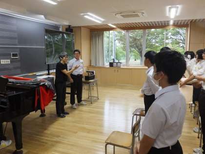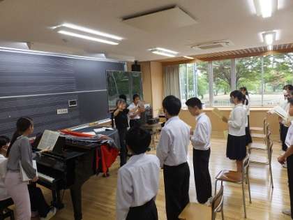今年度は、地域の合唱団で活動されている谷崎さんに合唱指導をお願いすることができました。
