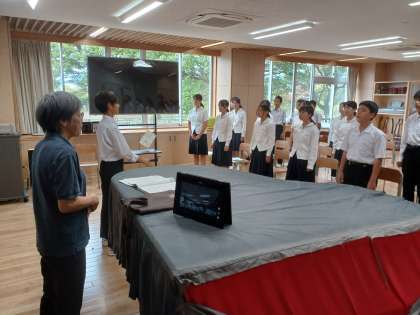 今日も谷崎さんに合唱指導をお願いしています。 1年2クラスの合唱練習をみていただきました。