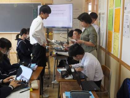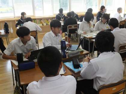 10月12日(木)2年 授業風景 公開日 2023/10/12 更新日 2023/10/12 2年生 2−1英語の様子です。 「科学技術のよりよい活用の仕方を考えよう」 身の回りのテクノロジーに関する英文を作成しています。