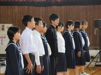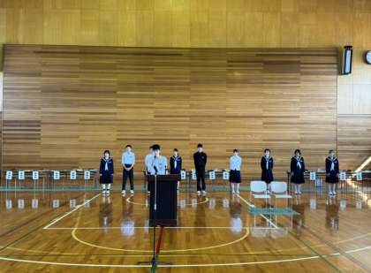 10月16日(月) 生徒会引き継ぎ 公開日 2023/10/16 更新日 2023/10/16 生徒会活動 前期生徒会と後期生徒会の引き継ぎが行われました。 前期生徒会長の言葉にもありましたが、それぞれの個性が伸びた半年だったと思います。 前期役員と後期役員が笑顔で握手を交わし、生徒会活動のバトンを引き継ぎました。