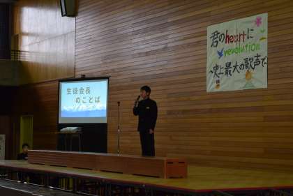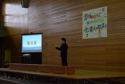 10月21日(土)文化活動発表会 公開日 2023/10/21 更新日 2023/10/21 学校生活 生徒会長が高らかに開会を宣言し、文化活動発表会がスタートしました。 合唱コンクール実行副委員長から、諸注意を伝えました。