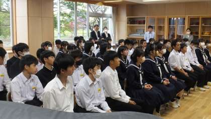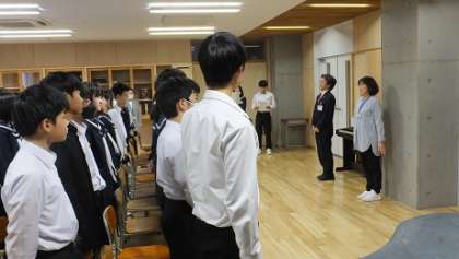 10月25日(水)2年 校外学習結団式 公開日 2023/10/25 更新日 2023/10/25 2年生 27日(金)の校外学習に向け、結団式を行いました。 校長から、「みんなが笑顔で過ごすために、そして誰一人いやな思いをしないために、どうすればよいか考えて行動し、一年後の修学旅行につながる有意義な校外学習にしてほしい」と話がありました。 真剣な眼差しで聞く生徒の姿を見て、よい校外学習にしてくれるだろうという期待が高まりました。
