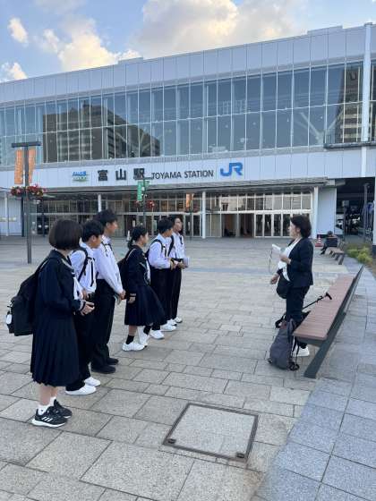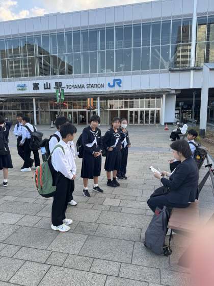 全ての班が無事に集合し、富山駅北口を出発しました。