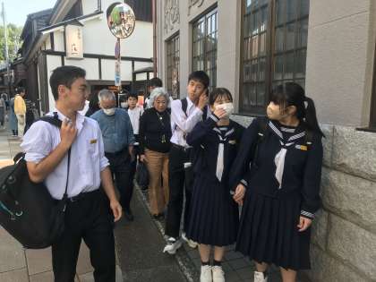 10月27日(金)2年 金沢校外学習 公開日 2023/10/27 更新日 2023/10/27 2年生 1組3班、5班です。 ひがし茶屋街でこれから昼食をとります。美味しそうなものが多く、どれを食べようか迷っていました。
