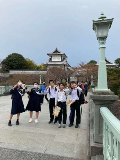 2組5班です。金沢城公園前で元気に記念撮影です。