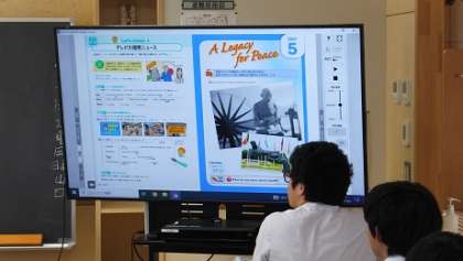 11月1日(水)3年 授業風景 公開日 2023/11/01 更新日 2023/11/01 3年生 3−1英語の様子です。 「平和のために働いた人のことを知ろう」 導入は、人権活動に尽力している著名人についてのクイズでした。