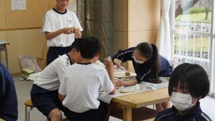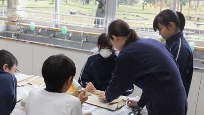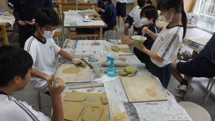 1−1美術の様子です。 「成形方法のコツを掴もう」 さまざまな成形方法を試しているようです。