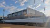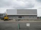 長く伸びたクレーンで、資材が高々と吊り下げられています。工事は着々と進んでいます。