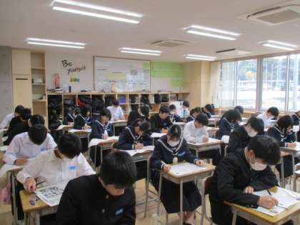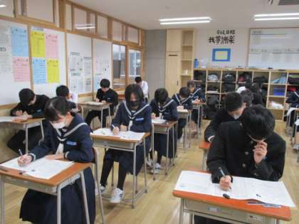 12月5日(火)3年 期末考査 公開日 2023/12/05 更新日 2023/12/05 3年生 1限、美術の様子です。 昨日からテストが続いていますが、学んできた成果を出せるよう一生懸命取り組んでいます。