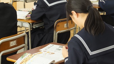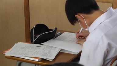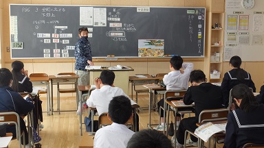 1−2社会の様子です。 「全国に広がる下剋上」 説明を聞きながら、重要な語句を書き留めています。