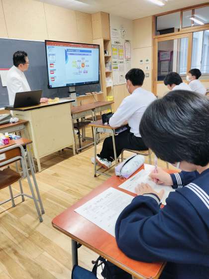 本日、1年生は、「学校保健委員会」を行いました。3名の講師の先生をお招きし、3講座に分かれて、心や体の健康について教えていただきました。
