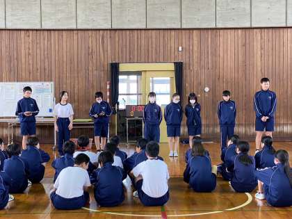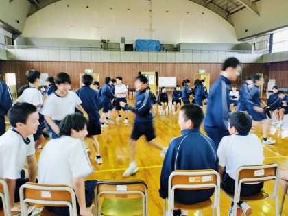 12月14日(木)1年 学年レクリエーション 公開日 2023/12/14 更新日 2023/12/14 1年生 1年生は学年レクリエーションを行いました。学年プログラム委員が企画し、準備をしてくれました。増え鬼ごっこや、ボール運びリレーはクラス対抗で行い、最後は学年みんなでフルーツバスケットをしました。大盛り上がりで、汗をたくさんかいて、とても楽しい時間となりました。